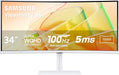 Anti-Glare: false; Aspect Ratio: 21\:9; Brand: Samsung; Brightness: 350 candela per square meter; Color: WARM WHITE; Contrast Ratio: 3000\:1; Cord Length: 59.05 inches; Curved Screen: true; Display Type: LED; Headphone Jack: true; Model Number: LS34C650TANXGO; Panel Type: VA; Product Name: 34 ViewFinity S65TC Ultra-WQHD 100Hz AMD FreeSync HDR10 Curved Monitor with Thunderbolt 4 and Built-in Speakers; Product Weight: 17.9 pounds; Product Width: 31.8 inches; Refresh Rate: 100Hz; Response Time: 5 milliseconds; Screen Size: 34 inches; Smart Capable: false; Stand Included: true; Tiltable: true; Touch Screen: false; USB Ports: 3 x USB-A; Wall Mountable: true