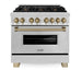 ZLINE - Autograph 36" Legacy Dual Fuel Range w/ 6 Burners Champagne Bronze Accents (RAZ-36-CB) - Stainless Steel/Champagne Bronze Accents